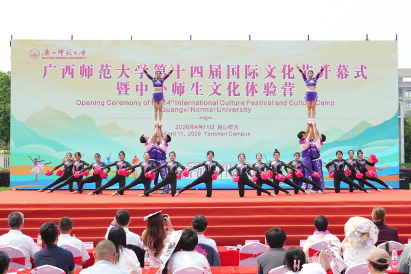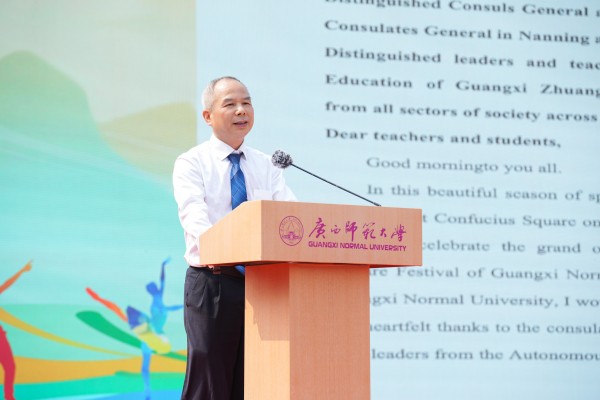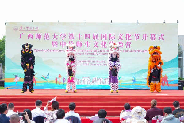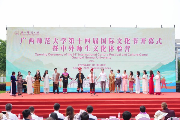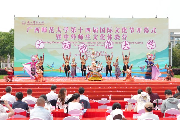 为进一步促进中外青年互学互鉴、增进友谊,搭建中外文化交流平台,营造开放包容的校园国际化氛围,4月11日,广西师范大学第十四届国际文化节开幕式暨中外师生文化体验营活动在雁山校区孔子广场举行。来自全区20多所院校超1000名中外师生齐聚一堂,共同参与这场文化交流盛会。校党委常委、副校长李先贤,大韩民国驻广州总领事馆总领事姜相旭、泰王国驻南宁总领事馆副总领事谭诺兰、俄罗斯驻广州总领馆代表切尔诺娃·安娜,国家移民管理局代表,桂林市公安局出入境管理支队代表,桂林市人民对外友好协会代表及学校相关职能部门负责人出席活动。