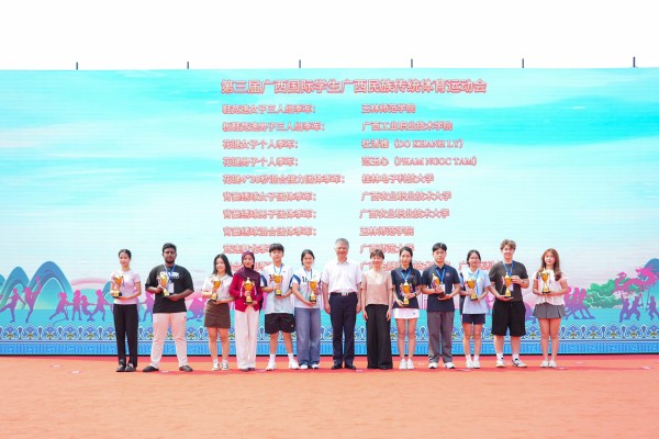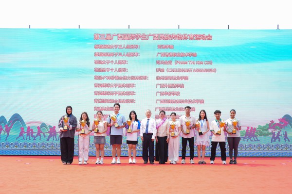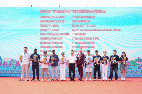 开幕式上还举行了该校承办的第三届广西国际学生广西民族传统体育运动会颁奖仪式。