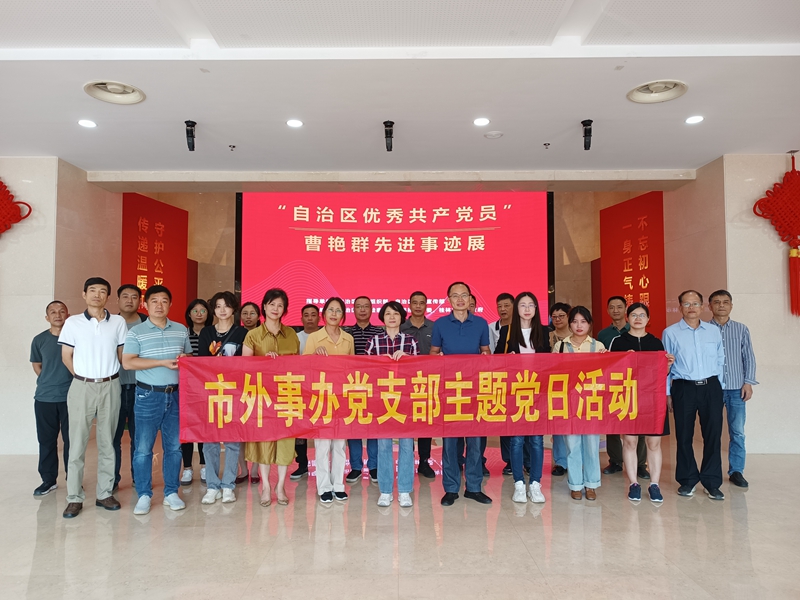 10月25日上午,市外事办党支部开展主题党日活动,组织党员干部、职工一行21人到市党群服务中心参观"自治区优秀共产党员"曹艳群先进事迹展。